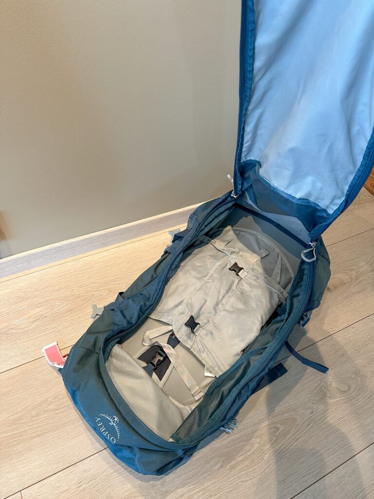 When it came to the Osprey backpack, I was torn between the 50L and the 70L. I tried both in-store and immediately felt like I was drowning in the 70L (for reference, I’m 167 cm / 5’6”). I honestly cannot stress enough how happy I am that I chose the 50L. Carrying even more weight than necessary would have made travel days pretty unpleasant. The size forces you to pack light, while still having space for literally everything you need without destroying your back. It’s so much more manageable on travel days, trust me. I’ve traveled for multiple months with this backpack and never once felt like I was missing space for something I wanted to bring. I’m incredibly grateful I didn’t overpack. Trust me, you need less than you think!
