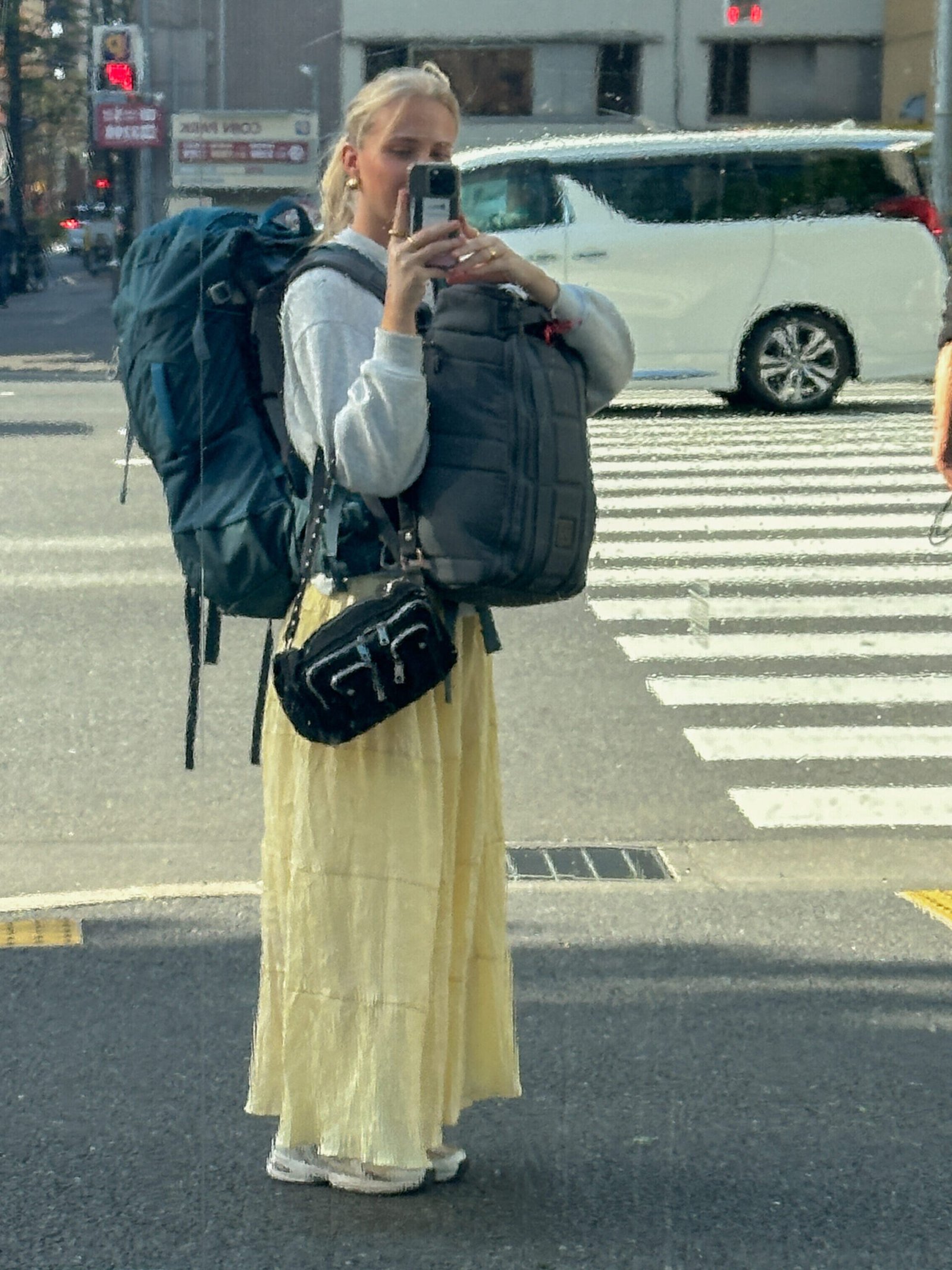 As for my Db Journey 20L, I found it to be the perfect complement to the Osprey, especially compared to having all that extra weight in a 70L backpack. Db is a Scandinavian brand (fun fact: it was originally called “Douchebag” until they expanded to the US and had to change the name). These backpacks are extremely popular in the Nordics — you’ll see people using them everywhere, from school to work and everyday life. By bringing my Db backpack, I still effectively have 70L of space, but the weight is distributed across my body.